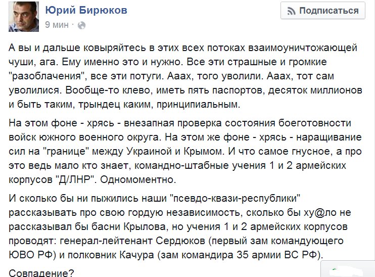Може в когось ще є іллюзії, але зброєнний конфлікт на Донбасі симметричний політиці. Внутрішня нестабільна політична ситуація активізує ворога. На даний час коментарі щодо політики зайві, потрібно воювати.