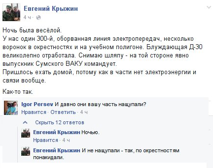 Сегодня в Енакиево было дивное утро, проснулся с матюками от свиста снарядов над домом. В 5:10 сепары были застигнуты врасплох и еще в течении часа не могли понять что произошло. Потом пошла инфа что ВСУ атаковало нас. пункты Карла-Маркса, Веровка, Софиевка, но там оказалось все нормально. Спустя час выяснилось что атаковали стрельбище дыров, которое прилегает к указанным населенным пунктам.  Стрельбище http://wikimapia.org/#lang=en&lat=48.253998&lon=38.135176&z=16&m=b