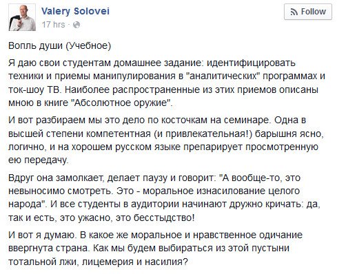 Валерий Соловей один из немногих оставшихся адекватных.