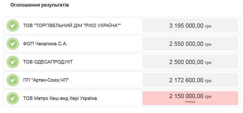 Переможець запропонував 2.15 млн. грн.