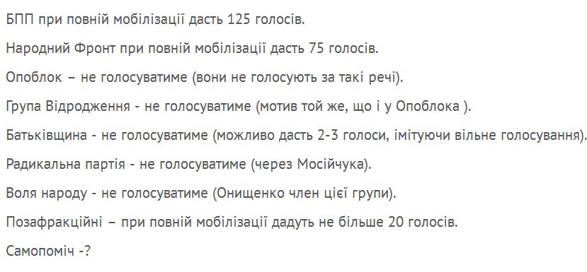 В свою очередь, народный депутат от фракции «Блока Петра Порошенко» Мустафа Найем заявил, что это будет первым тестом для генпрокурора. Он напомнил, что во время голосования за генпрокурорство Юрия Луценко Онищенко проголосовал «за», как и вся депутатская группа «Воля народа».