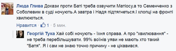 Кому захотiлося ? Тука уяви не має хто такий Батя, а офiцер ЗСУ - має. За Рубежа нiхто не вписується, вписуються за Батю.