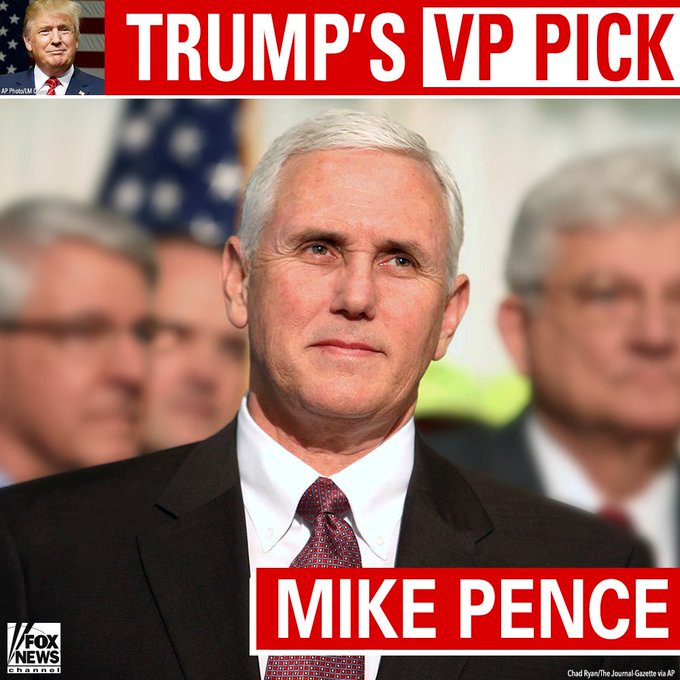 Отже, Трамп обрав Майка Пенса (ґубернатора Індіани) як свого віце-президента.