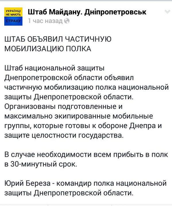 Тем, кто хочет диалога о текущих сложностях, о правах и отношениях – будет диалог и будет поиск решения. Тем, кто с оружием в руках захватывает, поджигает здания, стреляет в людей, правоохранителей, терроризирует с битами и масками людей – будет жесткий адекватный ответ. НЕ ЗАВИСИМО от партийных флагов и симпатий. НЕОТВРАТИМО.