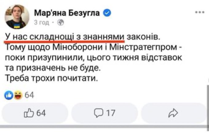 «Слуга» Безугла анонсувала призначення нового міністра оборони