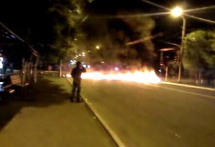 У центрі Маріуполя  на перетині вулиць Леніна та Казанцева, навпроти  міськвиконкому сепаратисти перекрили дорогу, палять шини, чути постріли.