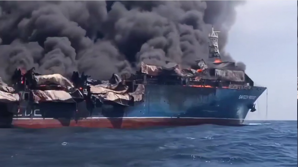 В Ормузском проливе горит тайский контейнеровоз, пытавшийся пройти без разрешения Ирана