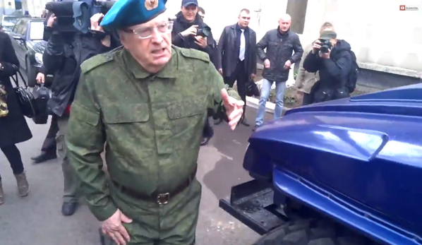 Russian army colonel and LDPR leader Vladimir Zhirinovsky arrives in #Luhansk and donates "Tiger" to terrorists.