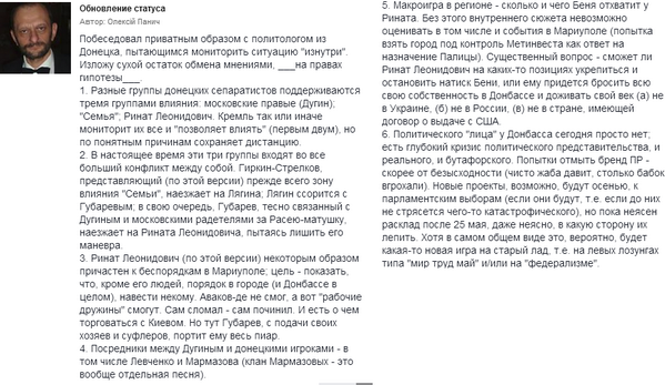 А Рінат Ліанідич, бачте, вже дотрахався до мишей - з Дугіним за вплив на Донбасі змагається. Це пиздець, любі друзі.