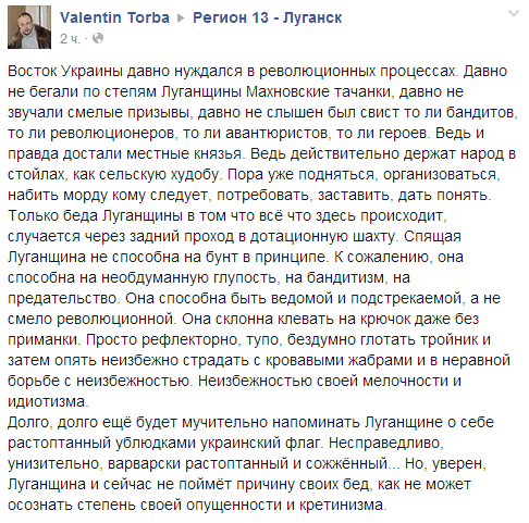 А тепер уявіть, що з тієї публіки він є найлояльніщий. А що буде, коли в центр і на захід ломанеться лавина озлобленої і голодної гопоти із специфічним донбаським менталітетом.