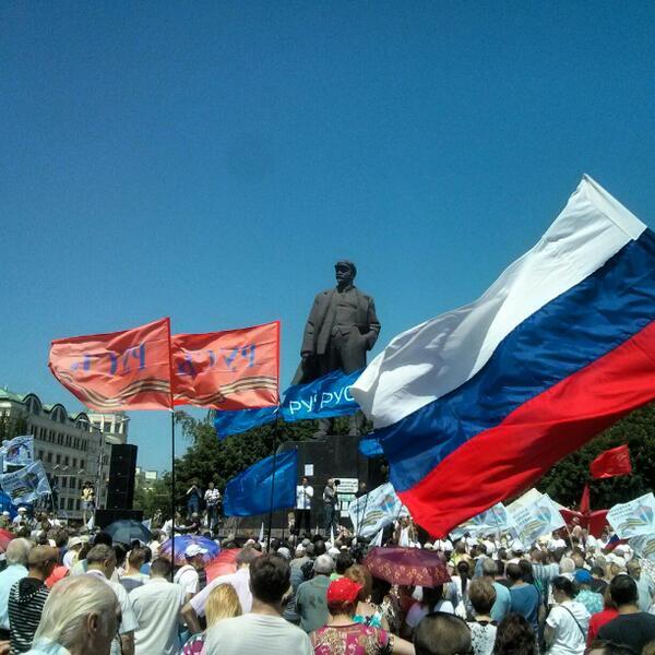 В центре Донецка проходит многотысячный митинг сторонников ДНР. Участники митинга требуют открытия границы с РФ(ФОТО) pic.twitter.com/BQSr89EerG